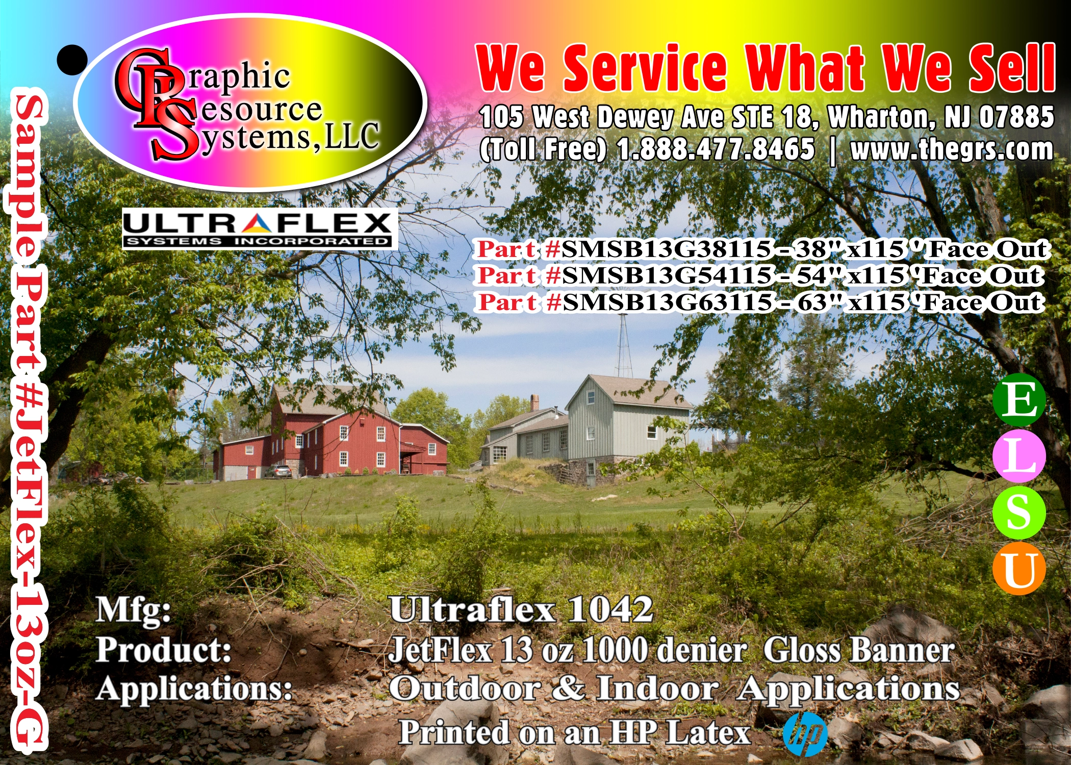 A premium 13 oz. front-lit banner material. Made with the same face-film as our Normandy® Pro, JetFlex® prints vibrantly and consistently from batch to batch. The 1000 x 1000 high tenacity polyester yarn gives it strength and superior print quality, making it the preferred 13 oz. banner material among print manufacturers and industry-leading printing facilities. The material is compatible with solvent, eco-solvent, UV, Latex, and screen printing. All the rolls are 115’ in length and are “Face Out” (“Front Wound”).